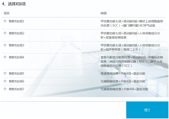 4、根据个人情况选择x加项;(骨密度检查11月12日起玉泉每周二上午);