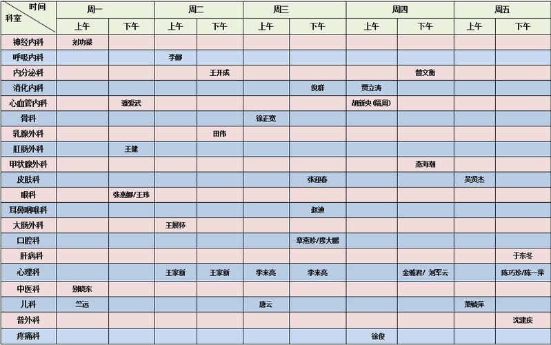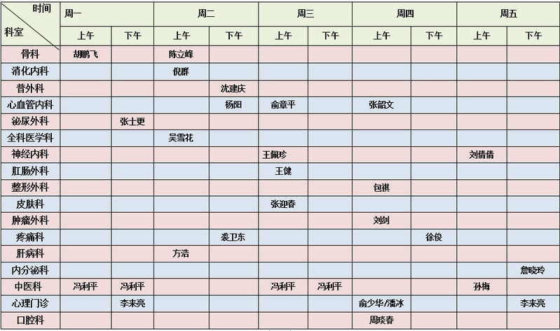 浙大二院校医院院区玉泉校区专家门诊排班表(1月)
