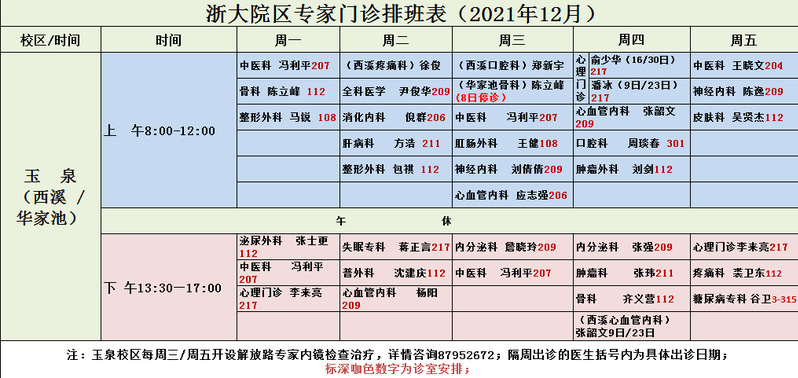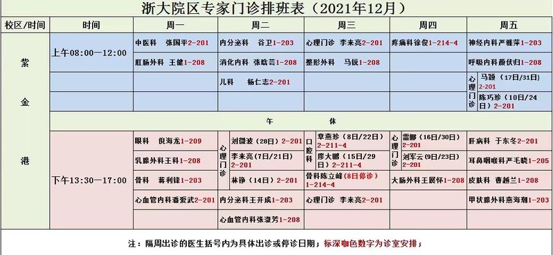 2021年12月专家门诊排班
