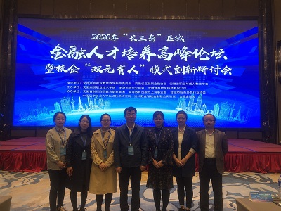 10月30日,财会金融学院副院长方春龙和专职教师周阳、杨庆冠、查静赴芜湖参加“长三角”区域金融人才培养高峰论坛暨校企“双元育人”模式创新研讨会,本次会议由安徽商贸职业技术学院、芜湖市银行业协会、安徽迪科数金科技有限公司主办,“长三角”区域“三省一市”的31所普通本科院校和职业高等专科院校、40家金融行业企业机构的代表参加了此次会议。