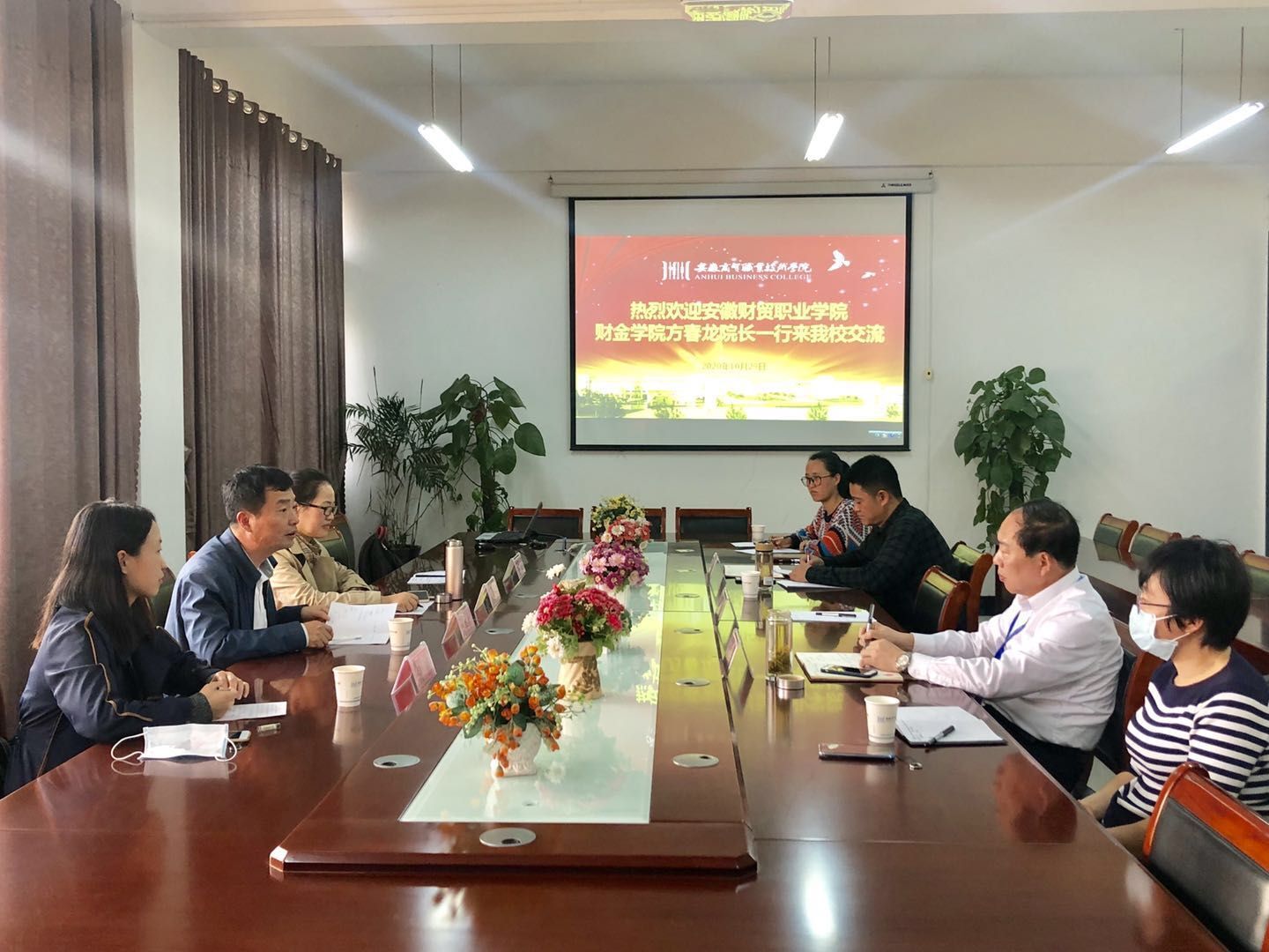 10月29日,财会金融学院副院长方春龙、副院长孙敬平带领专业教师前往安徽商贸职业技术学院考察交流,受到了安徽商贸职业技术学院校长李忠、会计学院院长丁增稳和副院长赵春宇的热情接待。