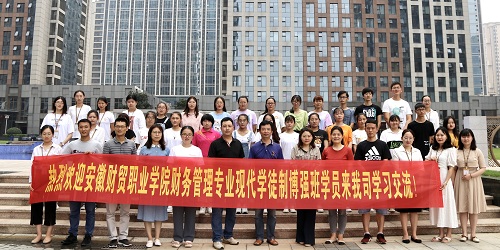 为了进一步推进现代学徒制工作,9月1日,茂荫财金学院副院长方春龙同财务管理教研室主任葛瑶、专任教师谢金鑫、王茹、李婷婷、现代学徒制班辅导员姜奥、何玉以及财务管理专业2018级现代学徒制班的同学们前往博强财税集团天鹅湖分公司,开展现代学徒制调研考察。博强财税集团董事长余雪、总经理杜礼强、董事长助理薛妍妍、天鹅湖分公司经理陈艳热情接待了考察团队。