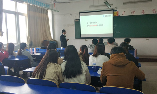 11月29日,茂荫财金学院邀请安徽迪科数金科技有限公司人力总监胡益伟来到2017级证券与期货专业的课堂上,为学生们作了一场关于“世界与中国经济形势”的讲座。