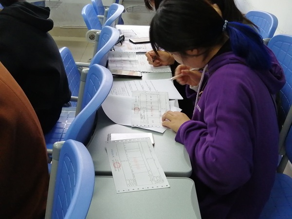 11月7日下午,由茂荫财金学院承办的税务技能大赛决赛在1105教室举行,进入决赛的18名同学组成6支队伍展开激烈角逐。决赛形式采用仿真企业财务、税务和开票员岗位工作,需要在规定的时间里完成手工填写增值税专用发票和一般纳税人增值税纳税申报表,案例资料来源于安徽省财税技能大赛参赛选手训练案例。