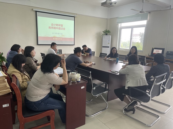 5月12日,财会金融学院会计教研室于综合楼312办公室召开了2020-2021学年第二学期期中教师座谈会。会计教研室主任李晶、副主任王晓岩、会计教研室专业课教师参加了座谈会,座谈会由李晶主持。会上,参会教师围绕近期的教学情况展开了讨论。