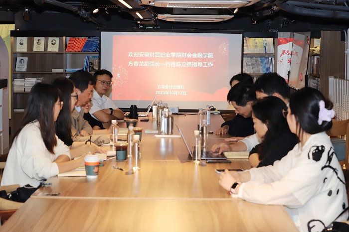 当日下午,方春龙一行抵达立信会计出版社。立信会计出版社社长、总编辑华春荣,书记赵新民、副社长郭光等参加会议。华春荣社长就出版社发展现状、未来工作计划,尤其是教学资源数字化转型建设展开了介绍,方春龙感谢立信会计出版社对学院教学资源建设的支持,介绍了财会金融学院专业群建设情况,就专业主体资源库建设、规划教材开发、特色教材资源等方面展开深入讨论,希望双方细化合作,进一步促进我院高水平专业群建设。(供稿:张瑶 审稿:方春龙)
