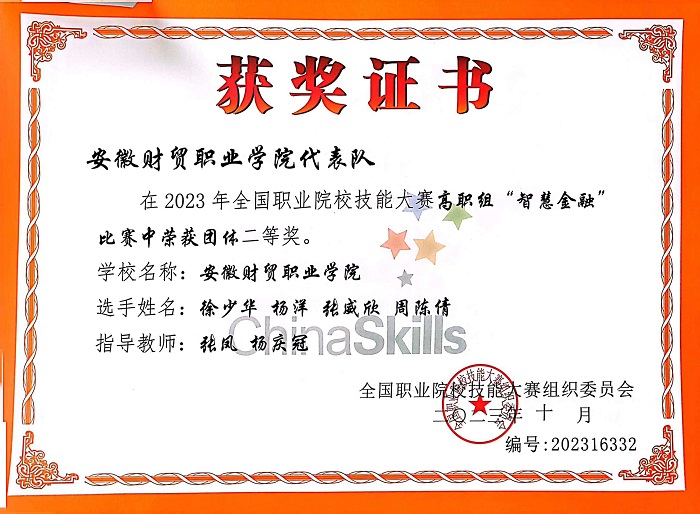 我院荣获2023年全国职业院校技能大赛智慧金融赛项团体二等奖