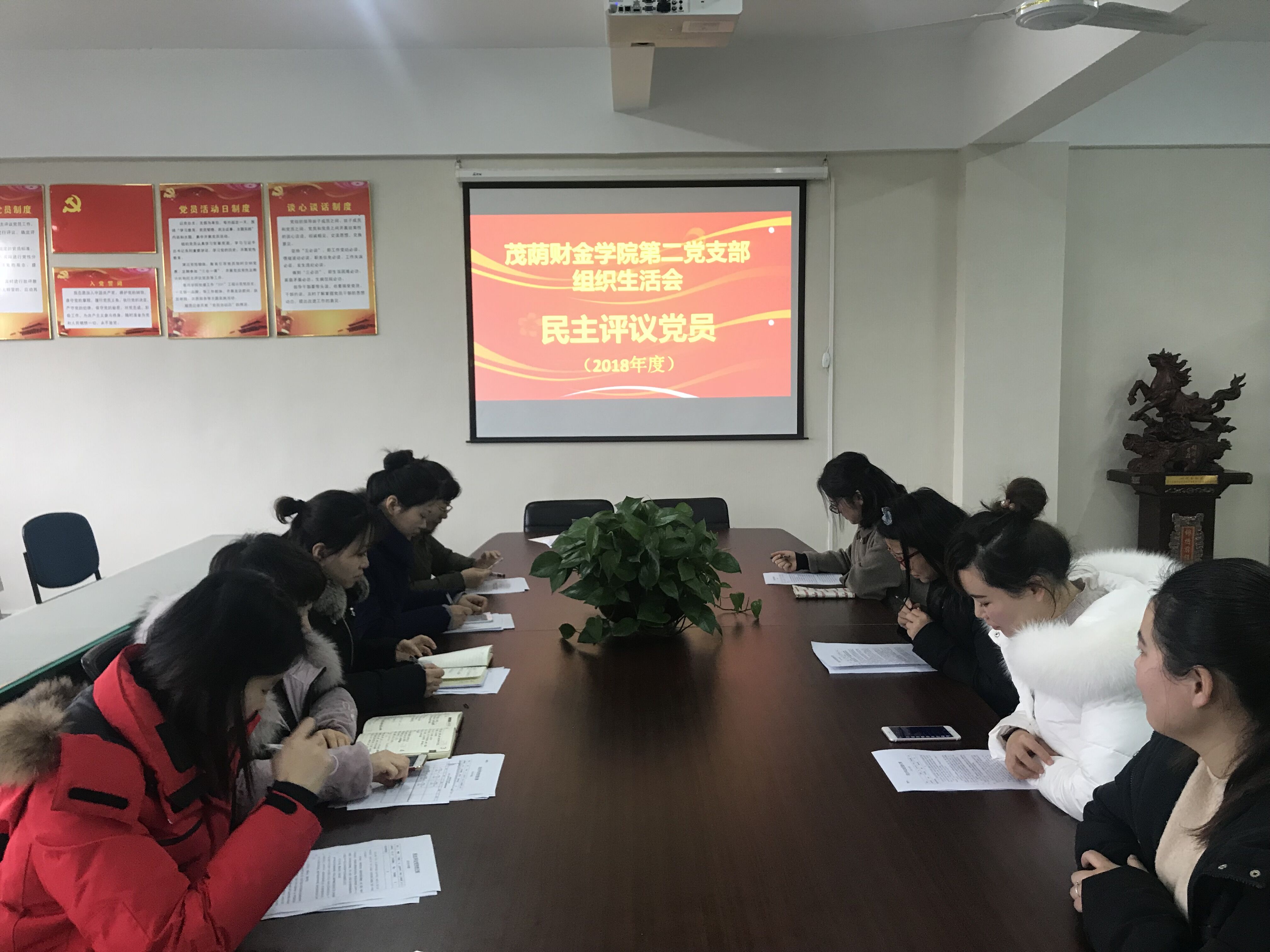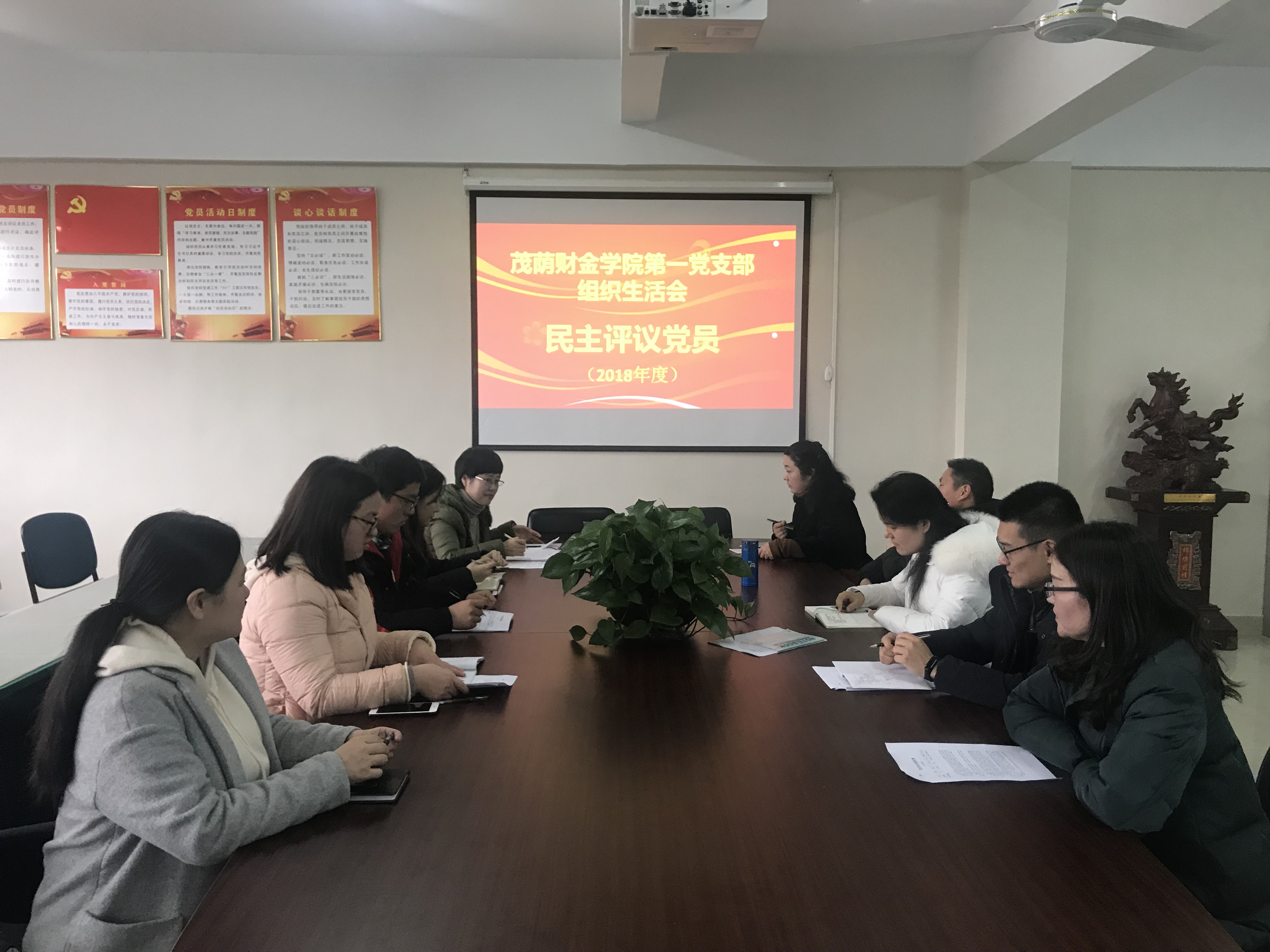为深入学习贯彻党的十九大精神,进一步增强党员的党性党纪观念,推进党建工作再上新台阶,按照学校党委的统一部署,2019年2月27日下午,茂荫财金学院第一党支部和第二党支部组织召开2018年度组织生活会暨民主评议党员大会,全体党员和部分群众代表参加会议。茂荫财金学院党总支副书记胡宏萱、葛瑶参加第一党支部会议。