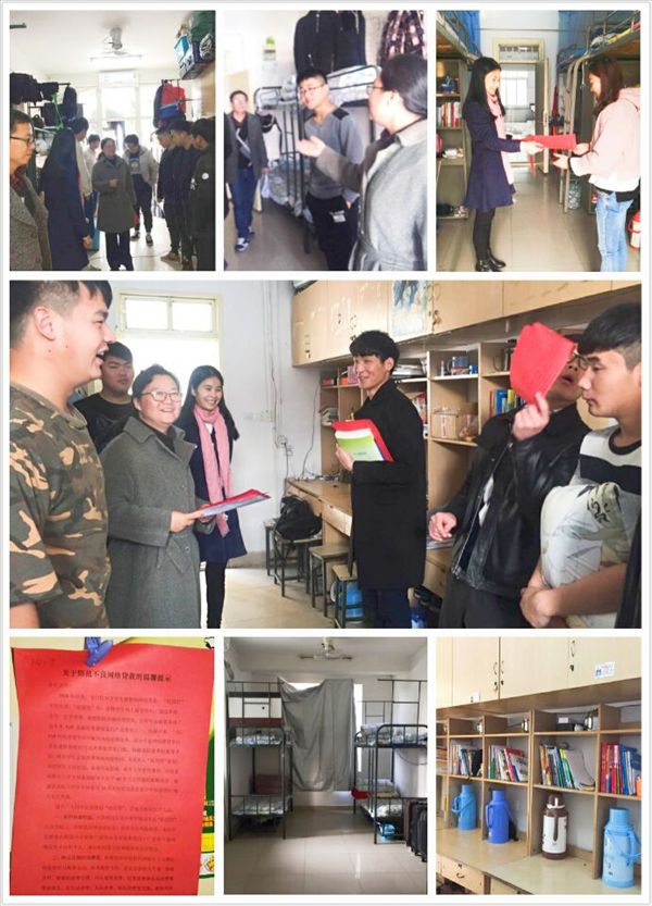 12月9日,根据省教育厅《关于开展“校园网贷”风险防范专题教育宣传活动的通知》文件要求,结合党员“两学一做”学习教育,茂荫财金学院党总支书记徐明及童杰、李林育等党员教师走访该院全部学生宿舍,开展校园网贷风险防范宣传教育。 参加此次走访宣传教育活动的还有各班级推荐的优秀团员中的积极分子。当天,徐明一行人共走访了130余个男、女生宿舍,为每一位同学发放了由该学院老师整理制作的《关于防范不良网络贷款的温馨提示》,并与同学们亲切交谈,叮嘱同学们提高警惕,养成良好的消费习惯,远离不良网贷。