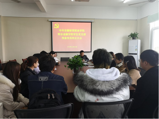 12月25日中午,财会金融学院学生党支部在综合楼312室召开2020年预备党员转正大会,大会由支部书记李健主持。