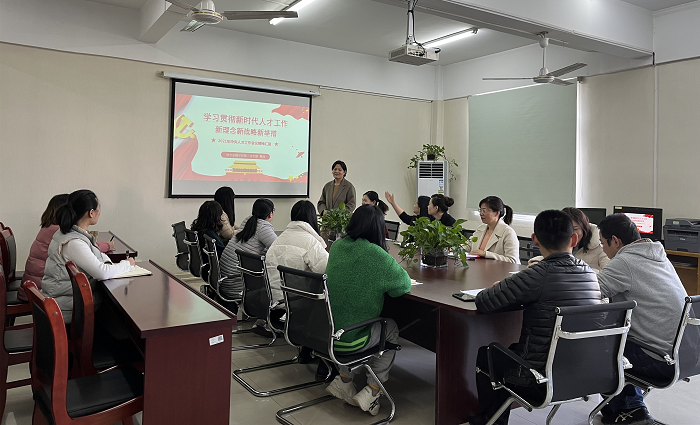 最后,葛瑶老师主讲了以《学习贯彻新时代人才工作新理念新战略新举措》为主题的微党课,通过介绍中央人才工作会议的会议内容,以及习近平总书记在会议上的重要讲话,对我国人才工作历史性成就、人才工作新任务新挑战以及2021年“加快建设世界重要人才中心和创新高地”的重要战略目标进行了深入剖析,并结合教育工作和教师岗位,号召教师党员们在人才工作中应主动肩负起培育“新时代人才”的使命与担当。