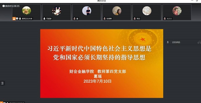 7月10日下午,财会金融学院教师第四党支部开展主题教育专题党课活动,党支部书记葛瑶主讲,全体党员老师线上参加学习。