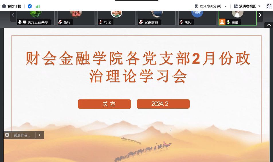 2月1日,财会金融学院教师第二党支部通过腾讯会议召开线上政治理论学习会,会议由支部书记查静主持,支部全体党员参加会议。