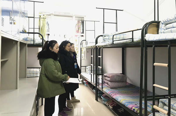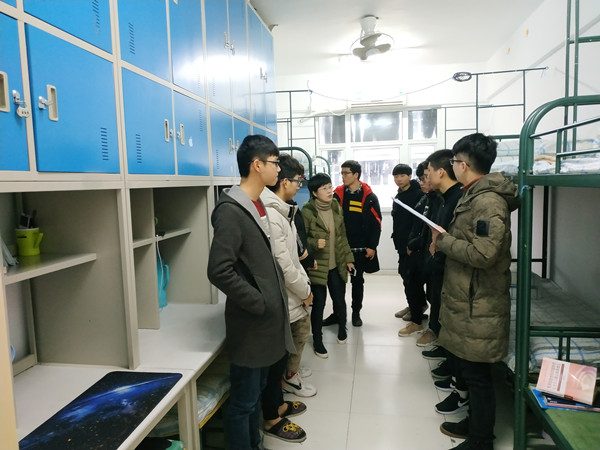 胡宏萱一行先后来到了四号公寓、五号公寓和六号公寓,仔细察看宿舍安全卫生状况,与同学们亲切交谈,询问同学们寒假生活、新学期打算、到校后是否存在困难等情况。希望同学们以饱满的精神状态迎接新的学期,养成良好的学习和生活习惯,合力营造安全、整洁、舒适、和谐的校园环境。检查走访中,针对部分宿舍卫生死角清理不到位、阳台物品乱堆放以及网线乱拉等问题,现场提出整改意见。对检查中存在的问题进行整理汇总,反馈至各班级予以改进。胡宏萱在检查中强调,辅导员要高度重视安全卫生文明月活动,切实做好动员加强指导,认真落实辅导员宿舍走访制度,学生党员、入党积极分子、团学干部要率先响应积极行动,充分发挥模范带头作用,确保活动取得实效。