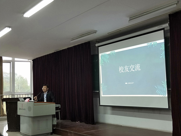 11月7日下午,茂荫财金学院举办杰出校友领航报告会,邀请优秀毕业生回母校与在校学生分享学习成长经历,领航学生职业发展。2018级200余名学生聆听报告会,党总支副书记胡宏萱主持报告会。