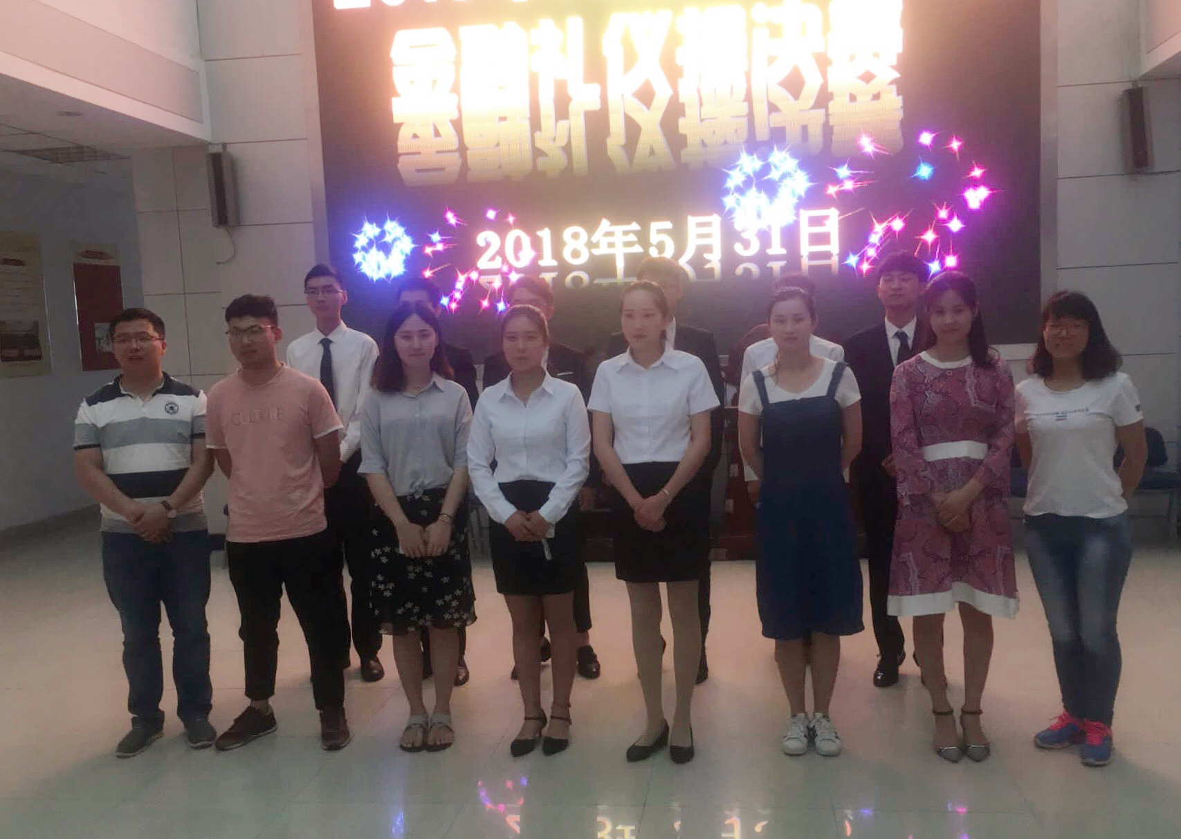 为强化教育金融礼仪知识,展现良好文明礼仪风范,5月31日中午,茂荫财金学院在实训楼证券模拟大厅隆重举行了金融礼仪操大赛。专职教师杨梓、专职辅导员童杰、李林育、胡云芳、学生秘书李彧佳老师担任此次大赛的评委。