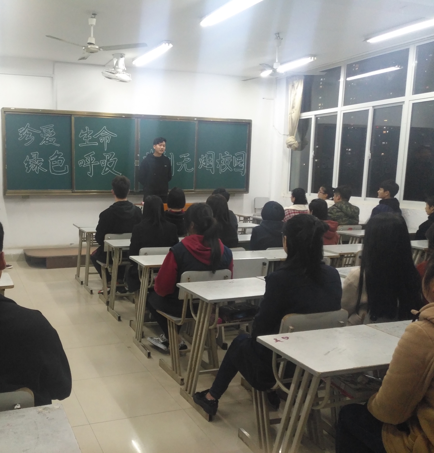 同学们针对部分同学在宿舍抽烟、乱丢烟头以及校园抽游烟等不文明现象展开充分讨论。同学们认为,大学生抽烟问题不仅危害自己的健康,吐出来的“二手烟”对其他同学的身体健康也构成严重威胁,特别是乱丢烟头易造成火灾,对校园安全也带来极大隐患;也有同学认为,大学生将生活费用于吸烟,也增加家庭的经济负担。同学们结合身边的事例,通过主题讨论活动,进一步增强对抽烟危害性和严重性的认识,引发同学们对身心健康和校园安全的关注和思考。