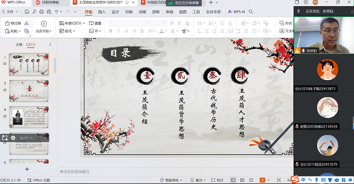 协会指导老师张杲阳对王茂荫生平事迹进行简要讲述,通过《条议钞法折》详细阐述其货币改革思想,并延伸讲述了中国古代货币发展史,透过一枚枚货币让大家了解中国历史和古代货币知识。此外,活动从王茂荫“德、才、学、识”人才思想出发,鼓励社团成员树立学习目标,养成良好行为规范,促进自身全面发展。