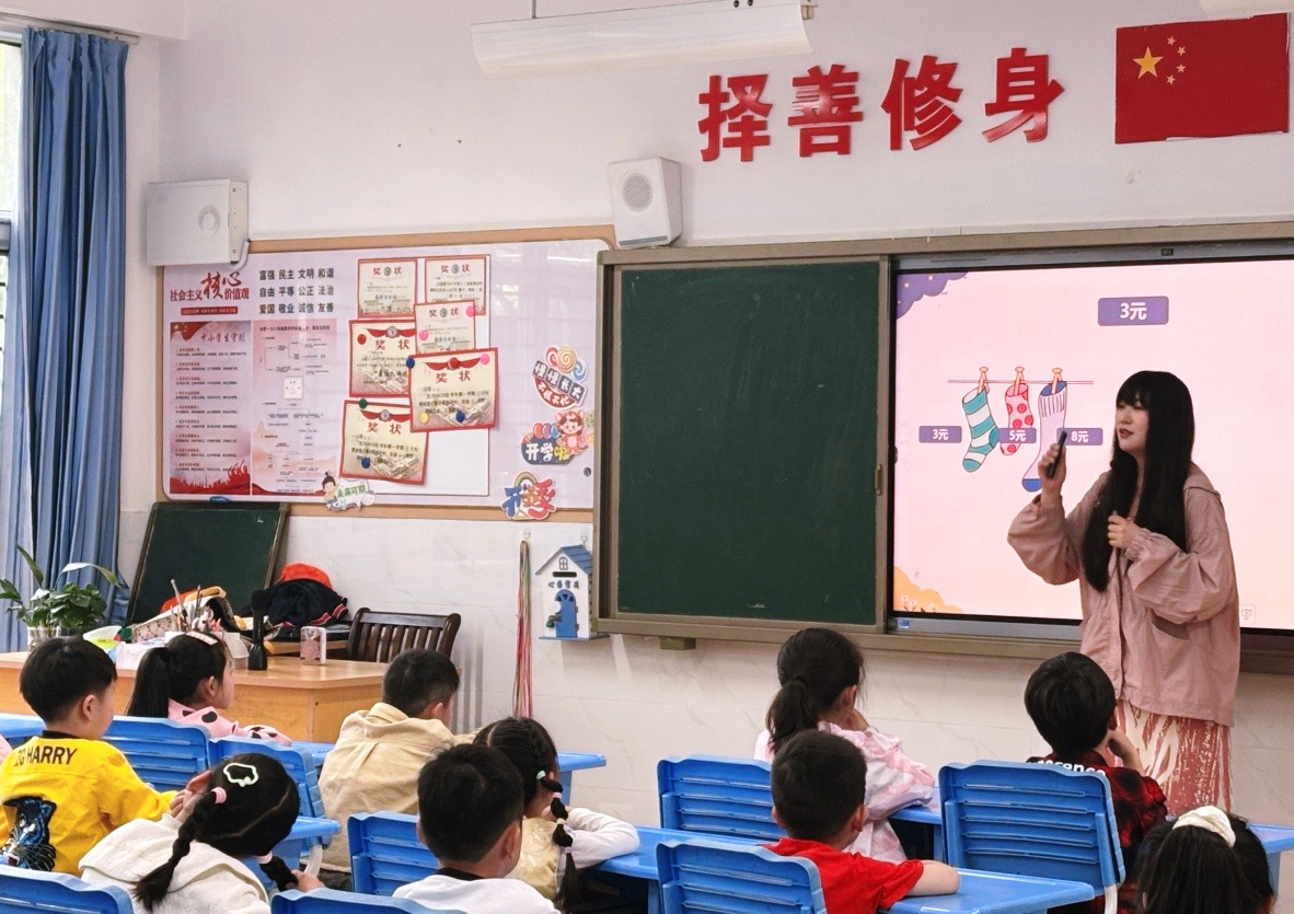 课堂上,王飞洋老师以“认识零花钱”入手,展示不同面值人民币帮助孩子直观理解其概念,围绕“零花钱从哪来”展开讨论,结合劳动教育理念,鼓励孩子们通过做家务、公益劳动等获取,要珍惜劳动所得。在“零花钱该怎么用”环节,引导孩子思考消费选择,懂得要合理规划、优先满足必要需求,建议将零花钱用于公益,融入社会主义核心价值观,倡议同学们“争做理财小达人”,学会储蓄,积累财富。