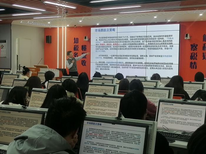 3月15日,国元证券公司桐城路证券营业部资深投资顾问赵鹏,在A501教室为金融教研室教师、金融类专业学生作证券市场讲座。