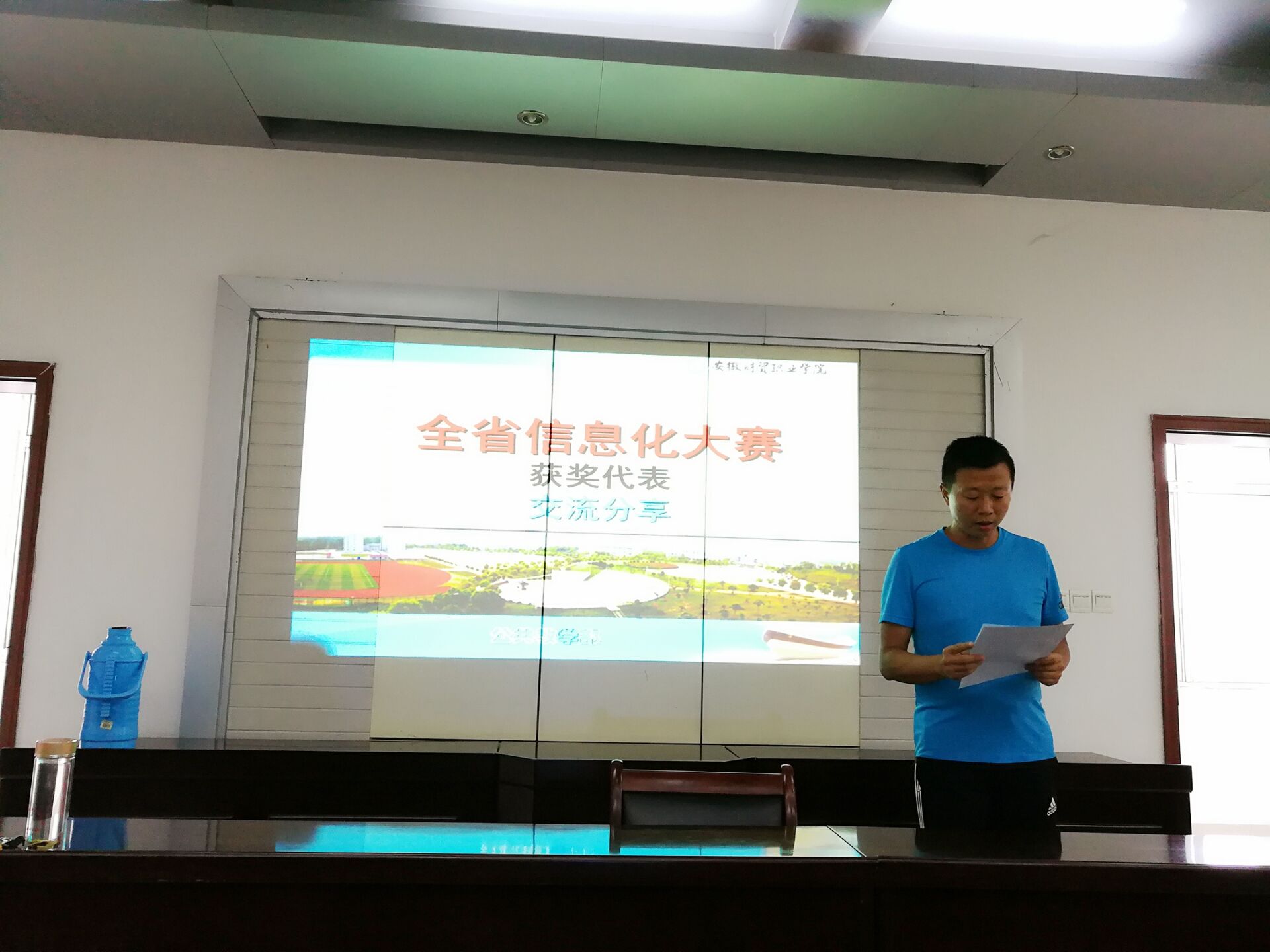 首先,由2017年全省信息化大赛教学设计二等奖获奖团队胡靖老师发言:他从组队、选题、分工合作、教案、注意事项、反思分享了自己在参加比赛全过程的感受和得失;课堂教学三等奖获奖团队姜强老师,从比赛的认识、参赛的准备、赛后的体会与大家交流分享,他说,科研可以促进教学,比赛也可以促进教学,多听多看多思考,不断积累,将这些东西转化为自己的思路,并尝试在教学中反复进行实践,不断改进,不断完善,这样才会出成绩,信息化比赛是手段,重要的是如何真正运用课堂,调动学生学习积极性,提高教学效果。教学设计三等奖获奖团队郭媛媛老师,研究比赛规则、借鉴学习、选题、技术手段、沟通、心态等方面谈了自己失败的教训,提醒老师注意。