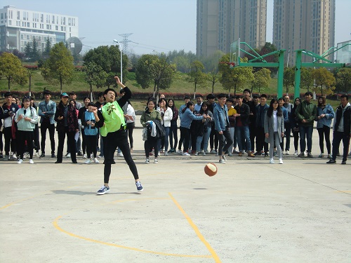 躲避球游戏,场上队员四处奔跑,场下队员寻找机会用球射向“猎物”,最终雪岩贸易学院在场上的时间最长,获得了该项目比赛的第一名,云桂信息学院、朱熹文旅学院分获二三名。
