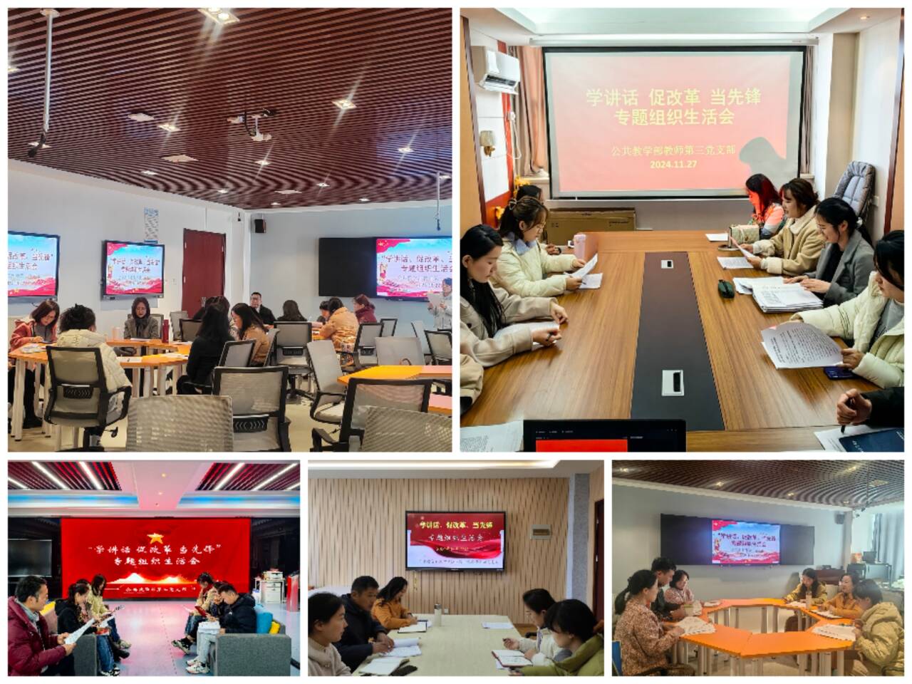11月27日下午,公共教学部党总支积极响应上级号召,精心组织并成功召开了以“学讲话 促改革 当先锋”为主题的专题组织生活会,各支部全体党员参加会议。