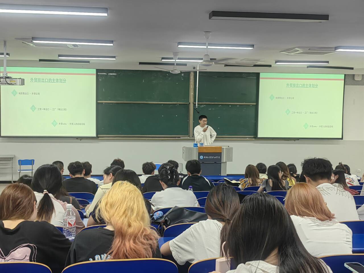 合肥莱玛泰管道有限公司总经理王磊担任本次讲座的主讲人。他结合自身经历分享了毕业之后的就业与创业故事,深入讲解了外贸出口的主要流程以及涉及的岗位,着重阐述了外贸人实现初级目标所需具备的基本能力。校友代表项洋分享了从事外贸工作的宝贵经验:坚持是走向胜利的关键,嘱托同学们在校期间不仅要学好专业课,还应多积累单证、会计、图形图像处理等实用技能。校友倪伟是在本科毕业后才正式进入职场。基于自身经历,他深刻认识到学历在未来就业面试中的重要性,建议同学们根据自身规划和兴趣爱好,做好学习与求职规划。