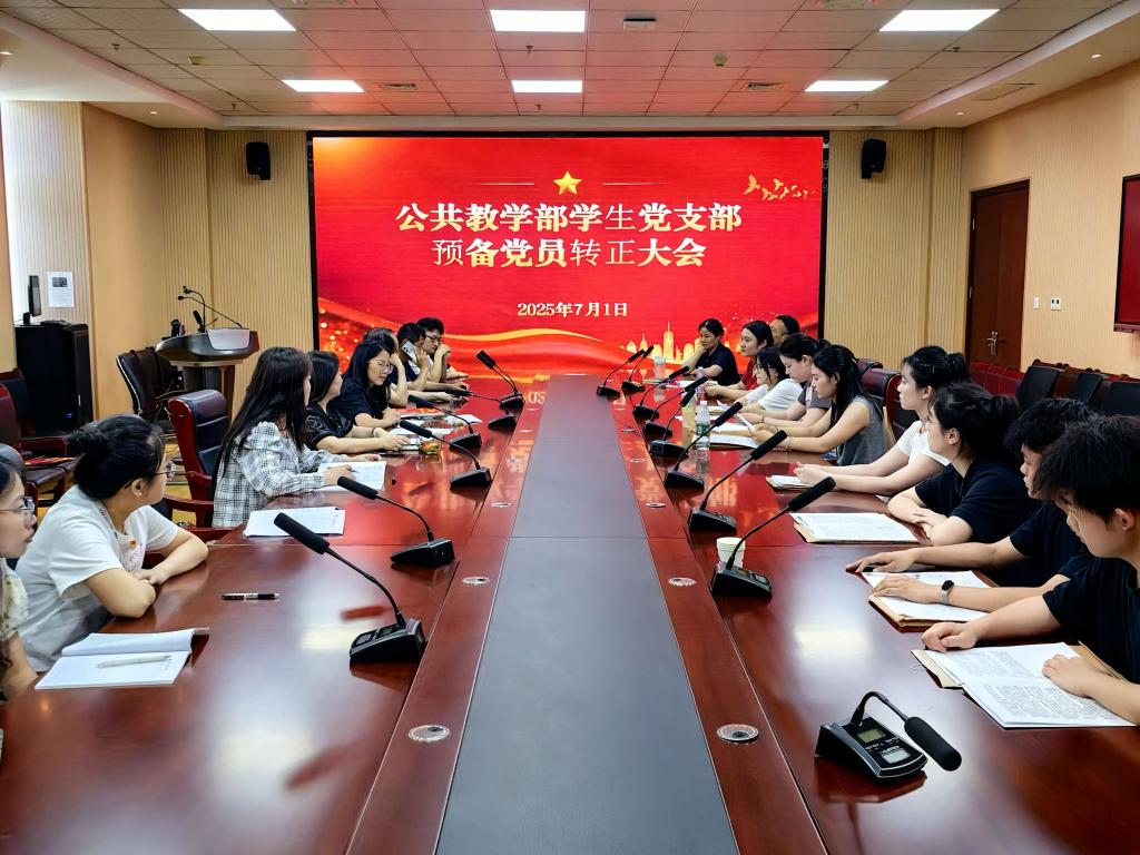 为进一步加强基层党组织建设,壮大党员队伍,切实做好党员发展工作。2025年7月1日,公共教学部学生党支部严格按照组织程序,召开预备党员接收大会暨预备党员转正大会,为党组织注入新鲜血液,增添新的活力。