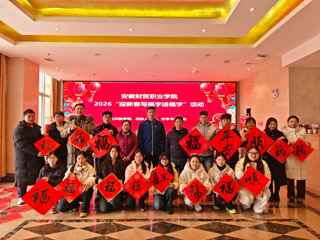 为传承中华优秀传统文化,营造温馨祥和的节日氛围,公共教学部、人事处、兰亭书画协会联合组织师生开展安徽财贸职业学院2026年迎新春“写福字送福字”活动,为全院师生送上满满的新春祝福。