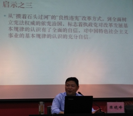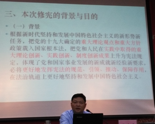 陈晓峰教授作新宪法宣讲。安大法学院陈教授的精彩报告受到全场师生热烈鼓掌。