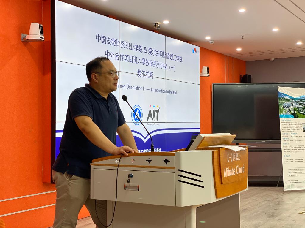 9月26日,2021级爱尔兰阿斯隆理工学院国际合作项目班入学教育在第二实训楼A501教室举行,教务处副处长刘大俊、国际教育科、外籍教师、爱尔兰阿斯隆理工学院驻安徽代表处及全体2021级爱尔兰国际合作项目班新生参加了此次活动。
