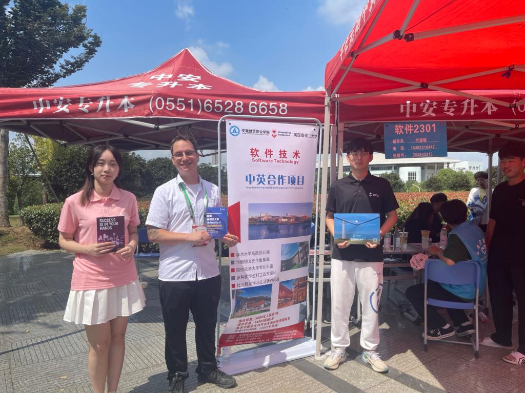 报到当天,爱尔兰香农理工大学(TUS)安徽代表处、英国桑德兰大学(UoS)安徽代表处为新生们准备了别出心裁的“开学大礼包”,内含《给家长的一封信》、《雅思学习指南》、《英语学习及留学规划》等入学指导材料。