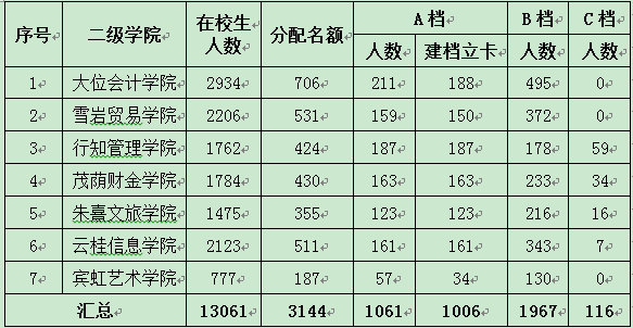 按照各二级学院专科层次学生数具体名额分配如下(不含休学、保留学籍学生人数):