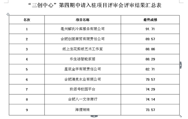 按照《关于选送第四批入驻“三创中心”创业项目的通知》,学院于11月20日举行了第四批入驻“三创中心”创业项目评审会,优选有专业特色和市场发展前景的创业项目入驻“三创中心”进行运营孵化。现将评审会的评审结果予以公示。