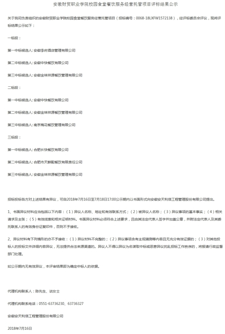 发布时间:2018-07-17 来源:安徽省招投标信息网