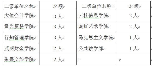 根据各教学单位副高级职称专业技术人员数量和重点专业分布情况,学术委员会在全校教学单位的推荐名额分配如下: