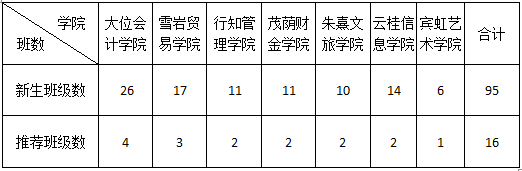 各学院根据新生班级数的15%(四舍五入)于10月9日前上报参加决赛班级,具体名额参见下表。参赛班级要求全体学生参加,比赛顺序由各参赛班级抽签确定。