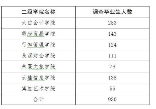 2017届毕业生就业状况调查各二级学院最低样本数