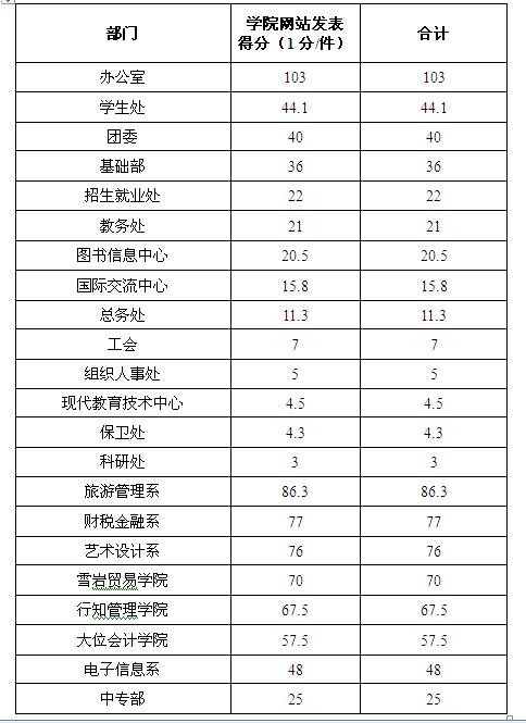 2015年度部门新闻信息发布得分汇总表