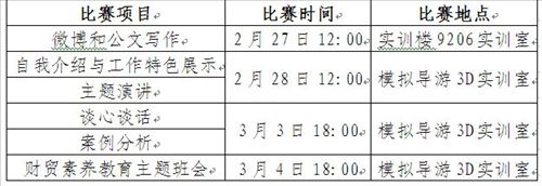 比赛项目内容参照《安徽省高校辅导员职业技能比赛参考项目及其主要内容形式》(皖教思政函〔2012〕42号)进行,本次大赛共设六个比赛项目:自我介绍与工作特色展示、微博和公文写作、主题演讲、主题班会、谈心谈话、案例分析,具体比赛内容与方式见附件。