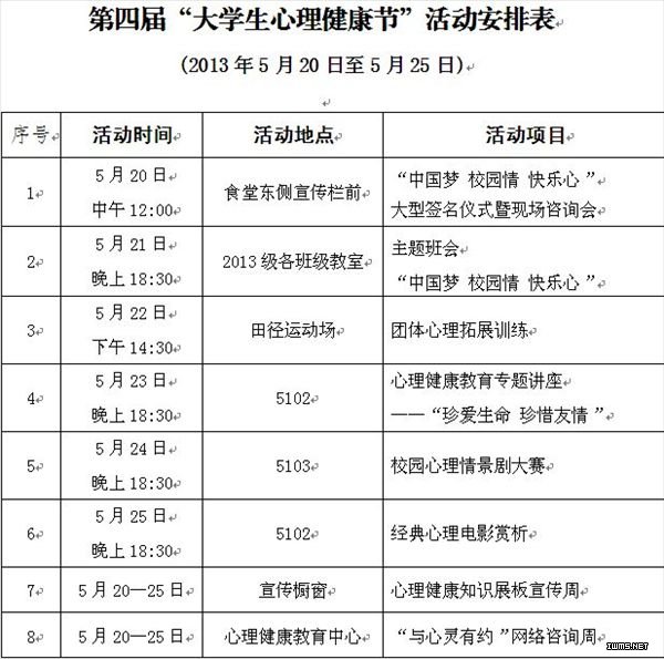 附件:第四届“大学生心理健康节”活动安排表