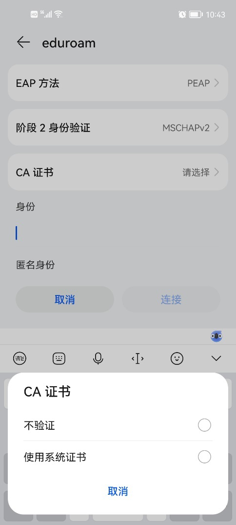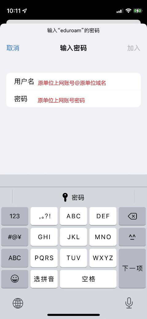 正确填写用户名及密码后,选择“加入”或“确定”验证通过后即可使用eduroam外访漫游服务。