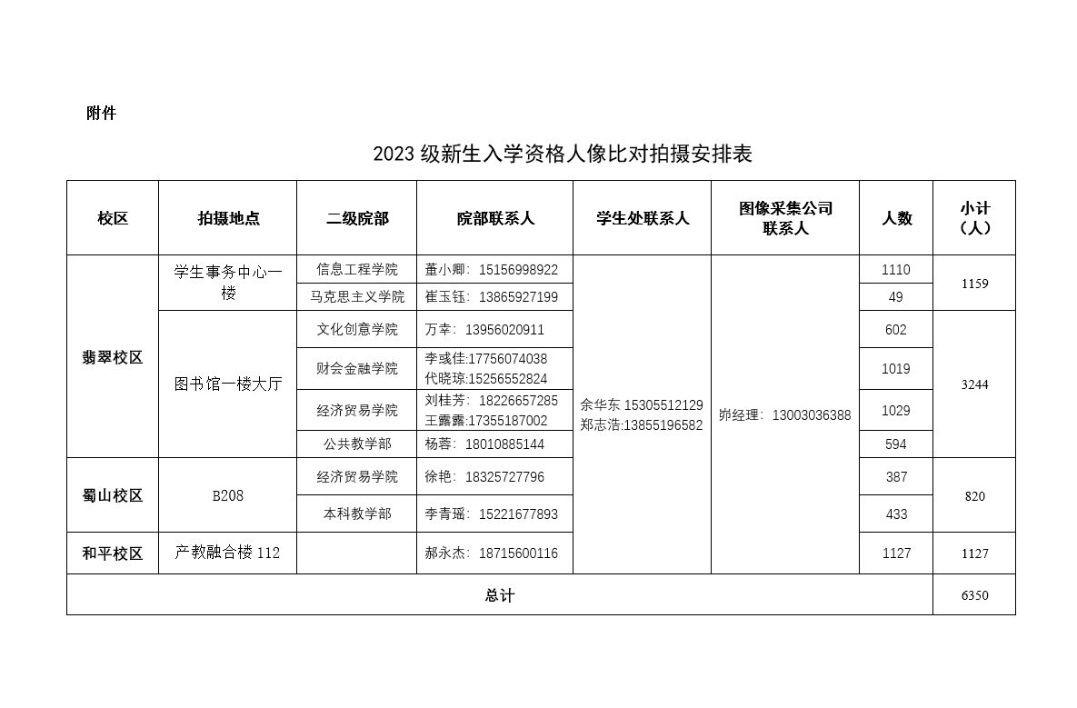 2.为保障拍摄现场秩序安全有序,各院部务必安排专人到场;