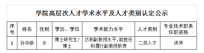 根据《安徽财贸职业学院2023年度公开引进事业编制高层次人才(博士)公告》和《安徽财贸职业学院高层次人才引进与培养管理办法(修订)》相关规定,经学校学术委员会进行学术能力水平及科研业绩审议。现将我校2023年度公开引进高层次人才(第二批)人员学术能力水平、专业技术职务任职资格认定结果进行公示。
