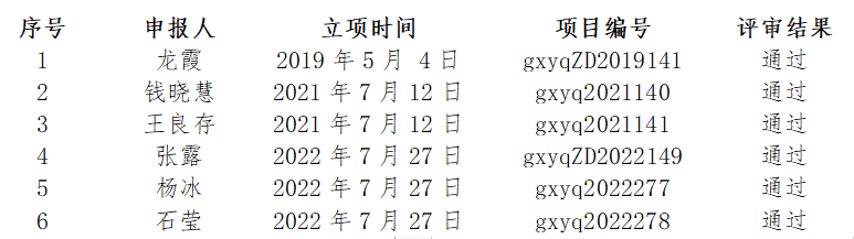 根据《关于做好安徽省教育厅高校人才项目集中结题工作的通知》(人发〔2024〕7号)和《安徽省教育厅关于规范人才项目结项备案管理的通知》(皖教秘人〔2017〕39 号)等文件要求,经过教师申请、职能部门初审、专家评审等程序,现将人才项目集中结项评审结果公示如下: