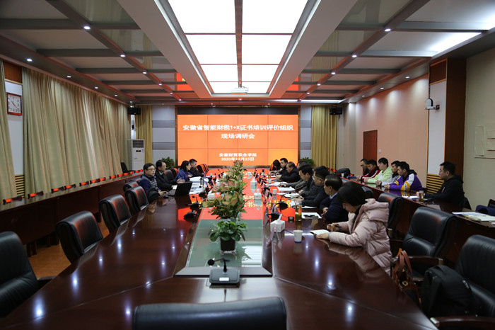 12月23日上午,安徽省“1+X”证书制度试点工作协调推进工作组朱小龙一行4人来我院调研“1+X”智能财税证书培训评价组织。学院党委副书记、院长刘银国,中联教育科技集团副总裁李昕,安徽商贸职业技术学院会计学院院长丁增稳,合肥财经职业学院会计金融学院院长张理想出席调研会。