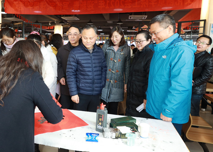 12月30日中午,由文化创意学院工会主办的2021年“迎新春,写福字,送福字”活动在我校食堂二楼举行。校党委书记张志祥,党委副书记、纪委书记何翔出席活动,文化创意学院相关负责人以及师生员工近600余人参加活动。