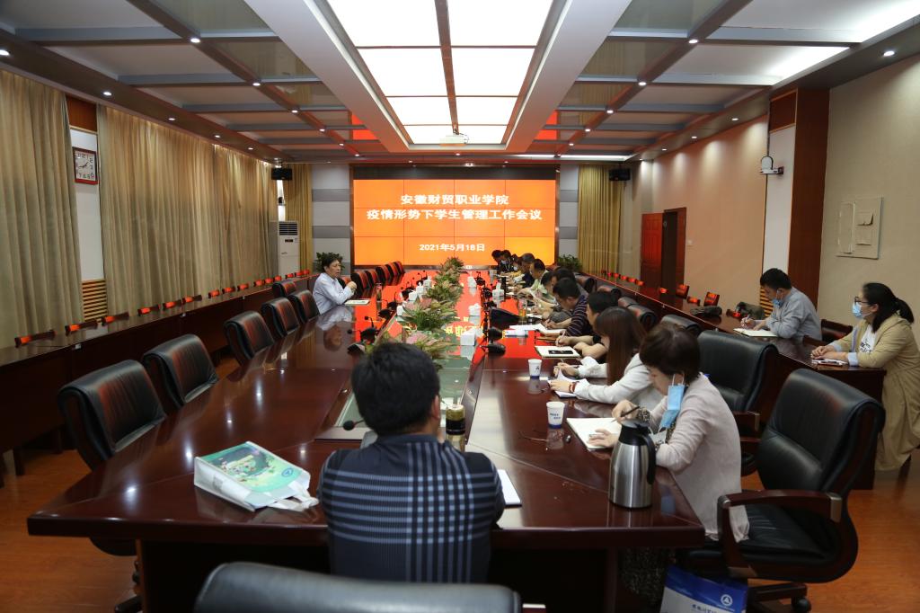 5月18日下午,学校在行政楼第四会议室召开疫情防控常态化背景下学生管理工作专题会议,党委委员、副校长胡戴新出席会议并讲话,学生处、总务处负责人,各二级院部书记、副书记参加了会议。