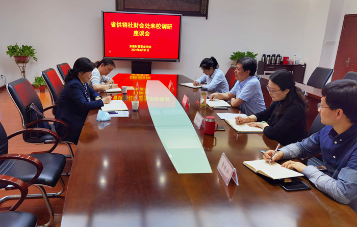 5月21日下午,省供销社财务会计处处长刘玉化一行来校调研指导财务工作,学校党委委员、副校长胡戴新参加并主持调研会,财务处相关负责人参加调研。